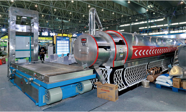 - Continuous flow roasting with circulating and reusable heating medium inside the roaster, achieving a capacity of 300–500 kg per hour.